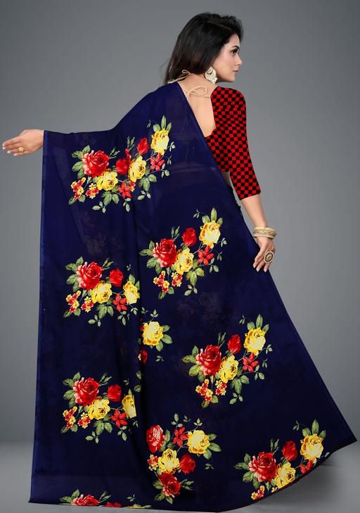 Name: Georgette Navy Blue Saree With Blouse
