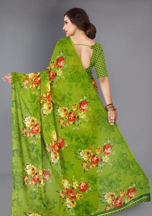 Give in to the exotic confluence of today and tomorrow in this lovely casual wear saree. This sarees is made of georgette fabric which is highlighted with elegant printed and pallu which makes this more demanding among people. This sarees is comfortable to wear and care. Paired with matching Printed unstitched blouse piece. You can wear this saree at casual, semi parties, family functions. Pair this with beautiful jewellery and pair of heels and you will look beautiful.