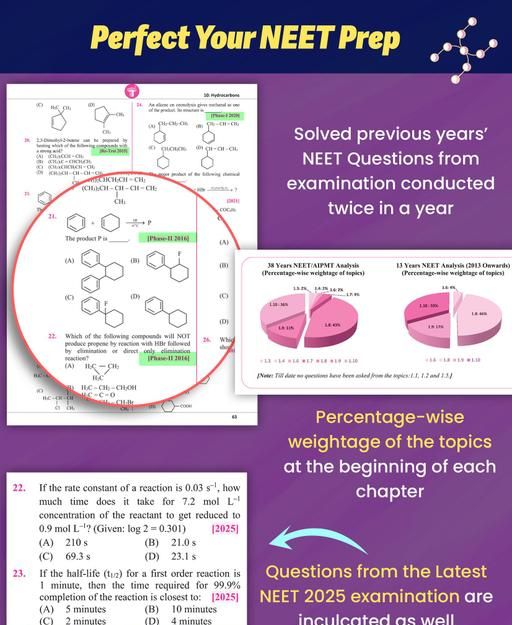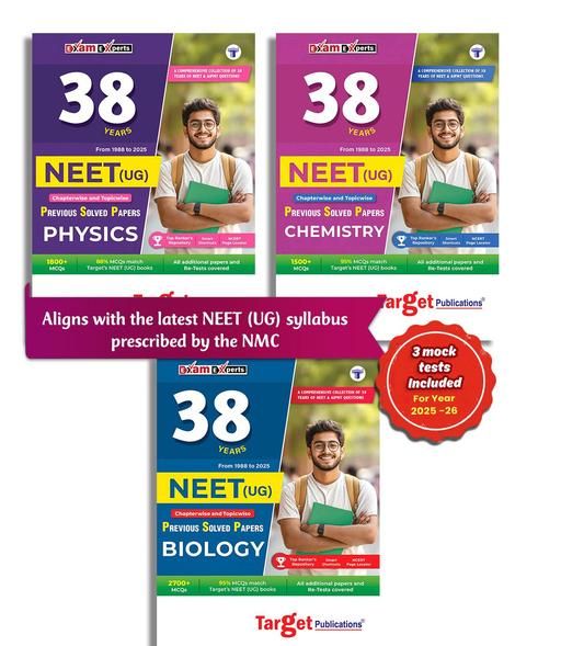 38 Years NEET Previous Solved Papers (PSP) series for Physics, Chemistry and Biology. These books are updated as per the latest NEET (UG) syllabus prescribed by the NMC. Access over 6,000+ Previous Years’ Questions (PYQs) organised chapter-wise and subtopic-wise, ensuring a systematic approach to your study regime. Stay up-to-date with the MCQs from the NEET 2025 exams, track your progress with the answer keys, and sharpen your skills with strategic hints. Gain valuable insights into exam trends and topic weightage for focused study. With graphical analysis, PSP series equips you to crack the NEET code and realise your dreams with confidence. Approximately, 93% of MCQs in NEET question papers align with those in Target NEET books. Fulfil your Medical dreams with Target Publications’ !