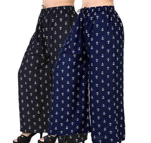 Name: (2 pcs) Combo beautiful unique,faishonable women Rayon Printed palazzos for daily and paty wear (Multicolour)