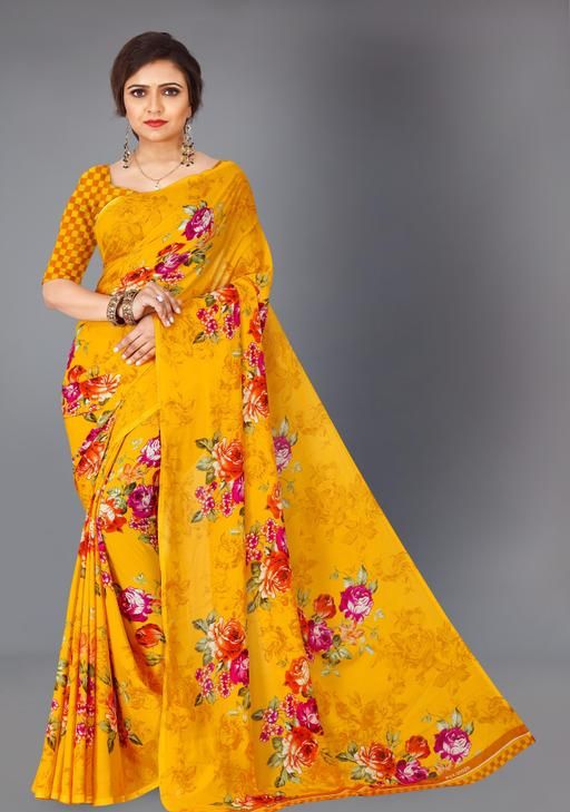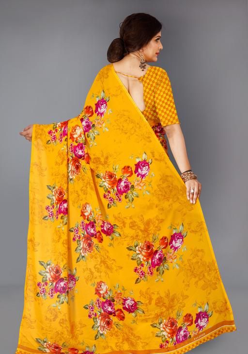 Give in to the exotic confluence of today and tomorrow in this lovely casual wear saree. This sarees is made of georgette fabric which is highlighted with elegant printed and pallu which makes this more demanding among people. This sarees is comfortable to wear and care. Paired with matching Printed unstitched blouse piece. You can wear this saree at casual, semi parties, family functions. Pair this with beautiful jewellery and pair of heels and you will look beautiful.