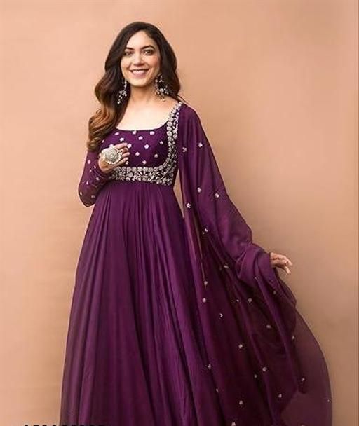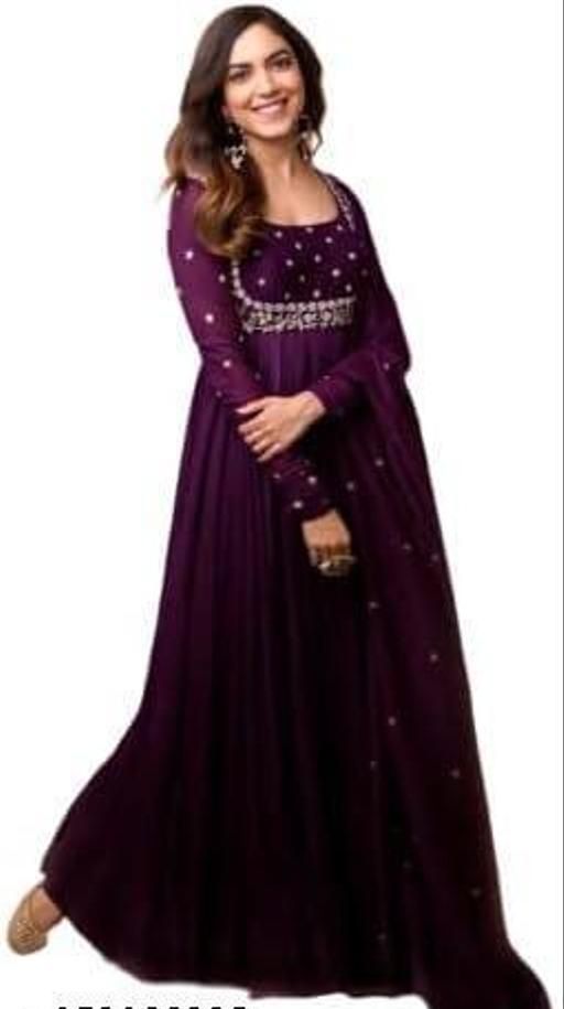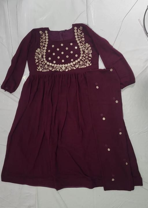 Name: Kurta With Dupatta Anarkali Trendy New Latest Dark Wine Pure Georgette Gown Embroidery Dupatta New Fashion #Latest Fashion #Casual #party #ethnic #dresses #Kurtis