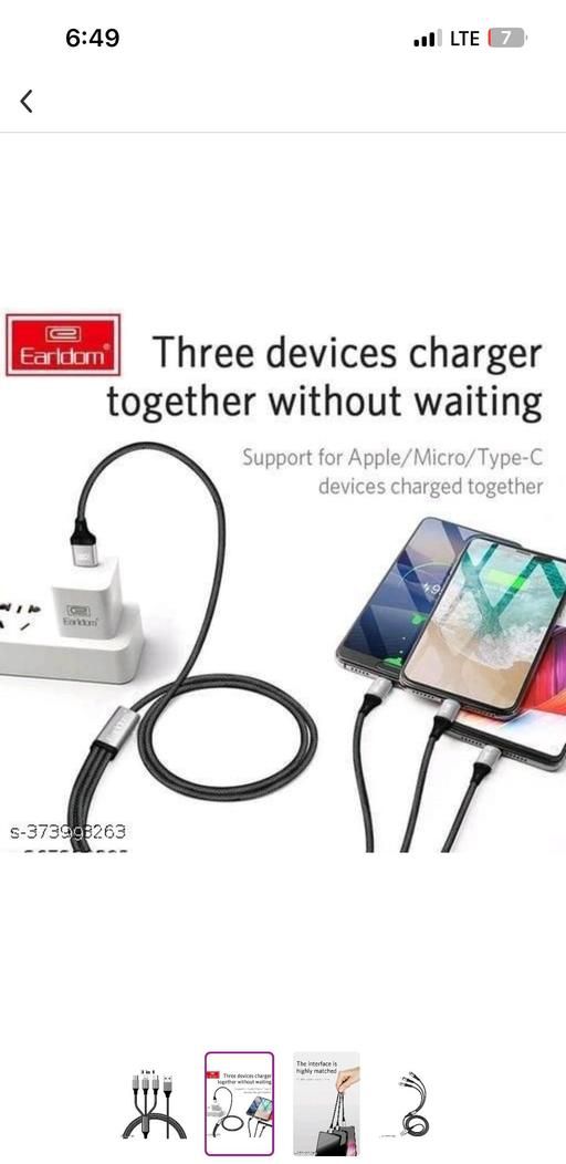 Product Name: Micro USB Lighthing Type C 3 in 1 Quick Data Cable (Compatible with all Smart Phone)