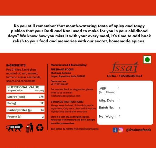 Name: Homemade Lal Mirch Ka Achar 400G Organic Red Chilli Pickle 400G