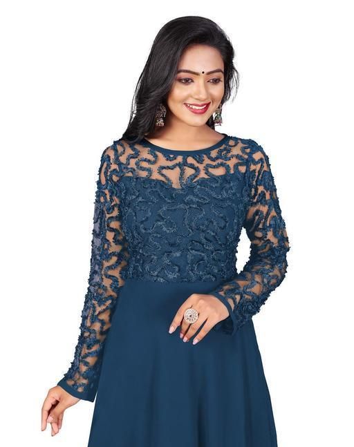 FABRIC BY GEORGETTE WITH NET LONG SLEEVE ROUND NECK WORK BY RIBBIN EMBROIDERED LONG WEAR CASUAL FORMAL GOWNS FOR GIRL AND WOMEN