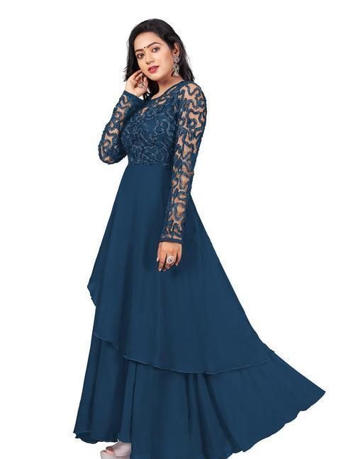 FABRIC BY GEORGETTE WITH NET LONG SLEEVE ROUND NECK WORK BY RIBBIN EMBROIDERED LONG WEAR CASUAL FORMAL DRESS FOR GIRL AND WOMEN