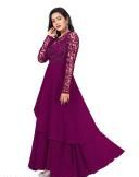 FABRIC BY GEORGETTE WITH NET LONG SLEEVE ROUND NECK WORK BY RIBBIN EMBROIDERED LONG WEAR CASUAL FORMAL GOWNS FOR GIRL AND WOMEN