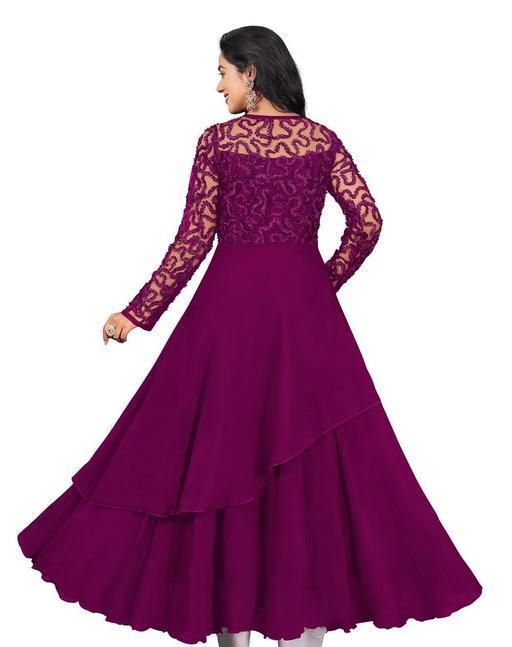 FABRIC BY GEORGETTE WITH NET LONG SLEEVE ROUND NECK WORK BY RIBBIN EMBROIDERED LONG WEAR CASUAL FORMAL DRESS FOR GIRL AND WOMEN