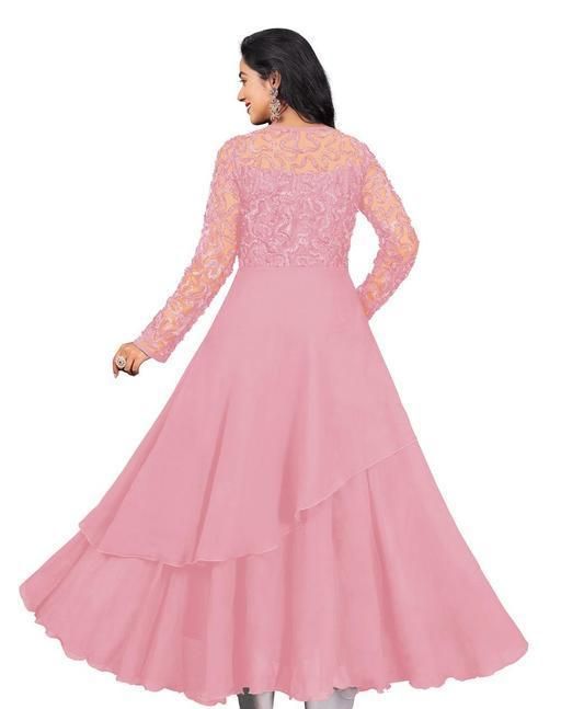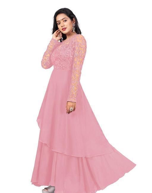 FABRIC BY GEORGETTE WITH NET LONG SLEEVE ROUND NECK WORK BY RIBBIN EMBROIDERED LONG WEAR CASUAL FORMAL DRESS FOR GIRL AND WOMEN