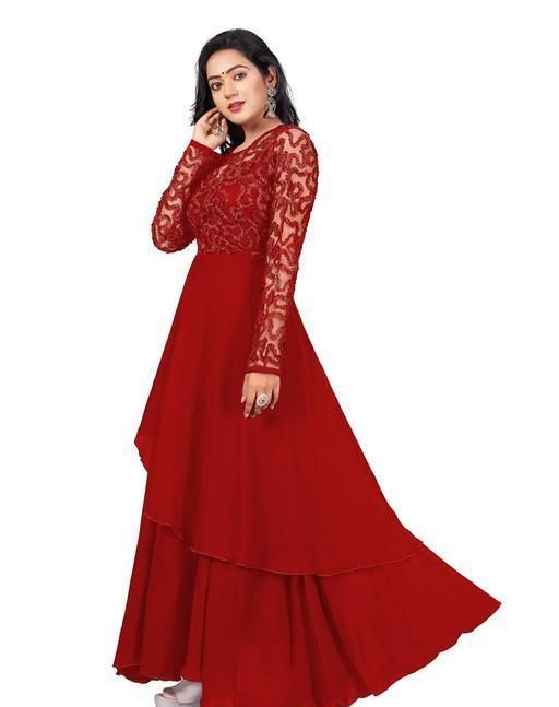 FABRIC BY GEORGETTE WITH NET LONG SLEEVE ROUND NECK WORK BY RIBBIN EMBROIDERED LONG WEAR CASUAL FORMAL DRESS FOR GIRL AND WOMEN