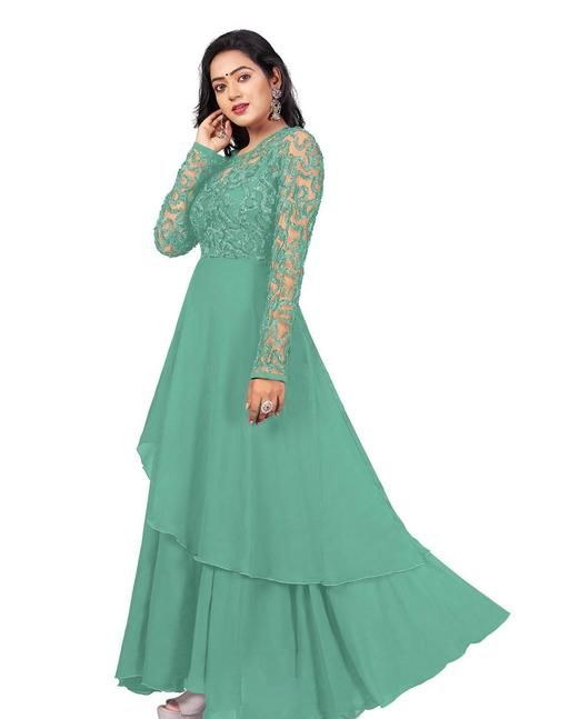 FABRIC BY GEORGETTE WITH NET LONG SLEEVE ROUND NECK WORK BY RIBBIN EMBROIDERED LONG WEAR CASUAL FORMAL GOWNS FOR GIRL AND WOMEN