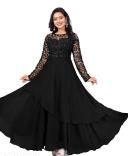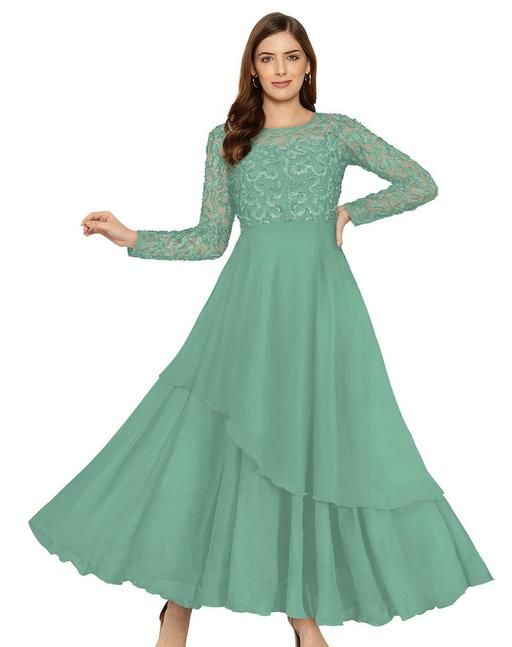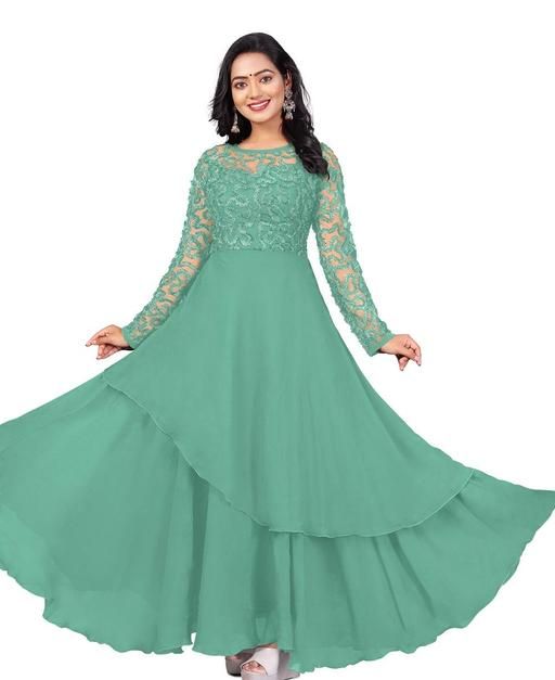 FABRIC BY GEORGETTE WITH NET LONG SLEEVE ROUND NECK WORK BY RIBBIN EMBROIDERED LONG WEAR CASUAL FORMAL DRESS FOR GIRL AND WOMEN