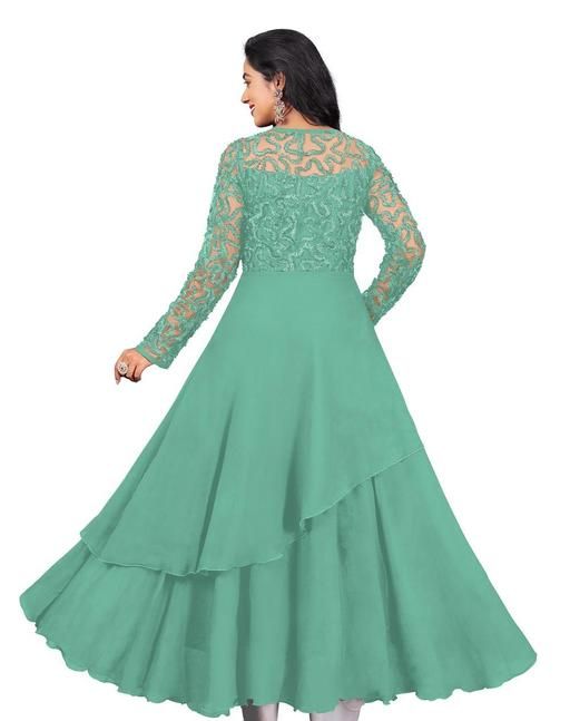 Name: new Pista photoshoot gown fashion dress long full length skater party wear one piece fancy latest frock ladies women simple readymade trendy designer flare and fit traditional kurti formal A-line floral flared ethnic wedding printed gown kurta dupatta set( NO BOTTOMWEAR)