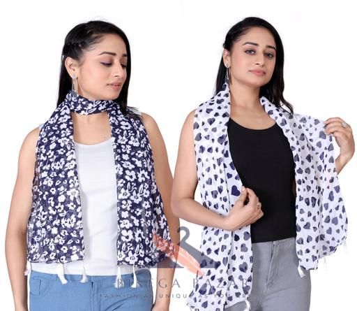 Name: Stylish Printed Multicolor Polyester Scarves Pack of 2 for Girls & Womens (DI_004-020)
