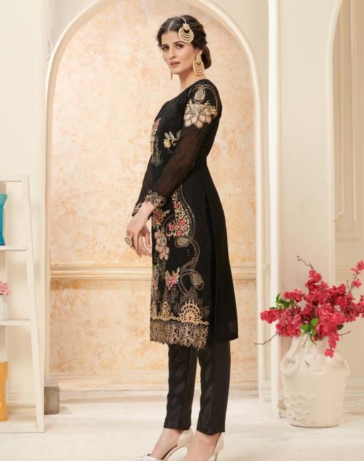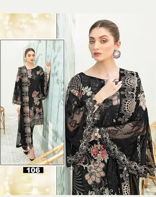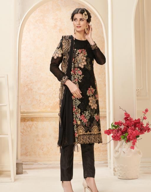 Name: Women's Black Floral Embroidered Georgette Semi Stitched Suits