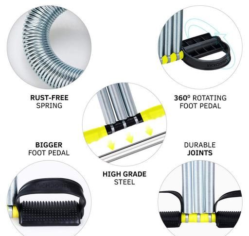 Tummy Trimmer Triple Spring Ab Exerciser is one of the most premium products of. It's a compact, portable fitness equipment for home. A simple but highly effective, Tummy Trimmer mainly targets your core - helping you reduce belly fat and keep your abdomen taut and fit. Tummy Trimmer Ab Exerciser also helps you keep your shoulders, back, arms, and thighs in shape. PREMIUM QUALITY - Tummy Trimmer Triple SpringAb Exerciser is designed after taking feedback from thousands of customers. All the problems of ordinary exercise pumps are rectified and elements are added, a few are modified to give the user the best experience. Tummy Trimmer is different because it has a 14.5-inch spring - 2 inches bigger than those that are available in the market. Plus, the foot pedal is also increased by 2 inches so that men with bigger foot size can use this easily.