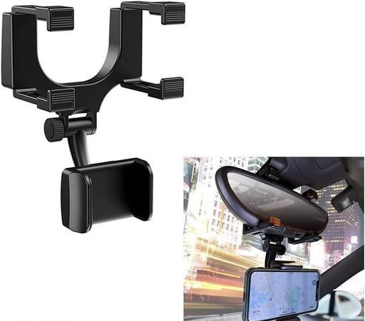 Name: OHAS Rear View Mirror Phone Holder Mount, Car Phone Mount- Phone Bracket, Phone Stand with 270° Swivel and Adjustable Clips, Universal Smartphone Cradle, Black