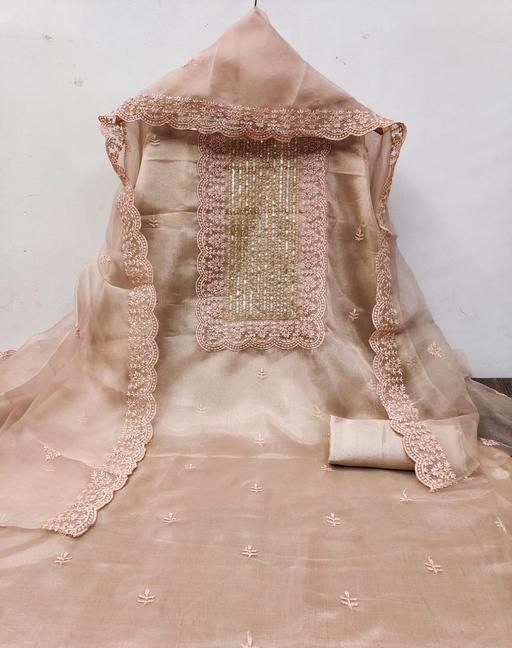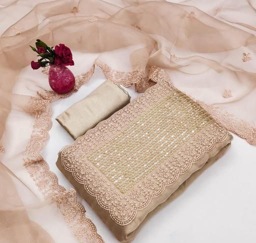 Name: Women's Cream Floral Embroidered Organza Suits & Dress Materials