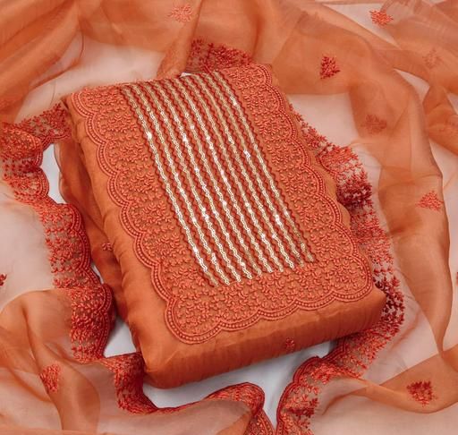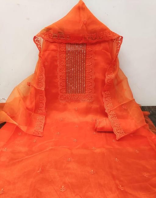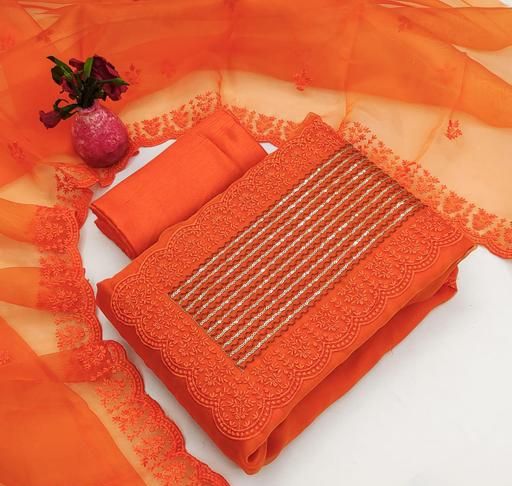 Name: Women's Orange Floral Embroidered Organza Suits & Dress Materials