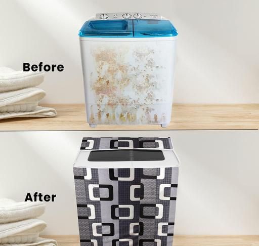 PACKAGE CONTAINS- 1 Pc. of Semi-Automatic Washing Machine Cover. STANDARD SIZE-. This protective cover is fit for the 5kg to 8kg {In Inches- 33x22x37:: In Cm:84x56x94} washing machine all major brands. HIGH QUALITY MATERIAL- It is made from premium quality Polyester material with attractive look. The material and stitching are expertly assembled by our dedicated designer team. SPECIAL SPACE & CUTS PROVIDED- Special cuts and provisions space for wires, inlet pipe and outlet pipe are provided at the back. EASY TO USED & CLEAN- You don't have to remove the cover every time you want to use it. Just need to open the zippered and it is ready to use when your machine is covered. Also easily clean it with a dry and wet cloth as well