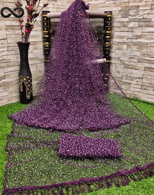 SAREE :- NET SAREE WITH RUBBER WORK AND BLOUSE SAME AS SAREE Net Saree 5.5m Blouse net 0.8m