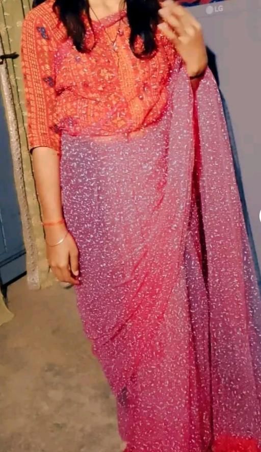 SAREE :- NET SAREE WITH RUBBER WORK AND BLOUSE SAME AS SAREE Net Saree 5.5m Blouse net 0.8m