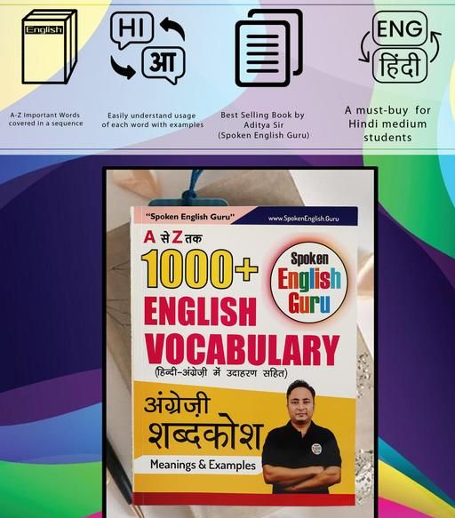 This Spoken English Guru English Vocabulary Book contains 1000+ A to Z English vocabulary words in Hindi and English language. Each English word in this book has its meaning written in Hindi, and then there are two examples given in Hindi and English to make the reader understand the usage of the word as well. Just knowing the meaning of a word isn't enough, it needs to be necessarily supported by examples to understand properly when and how a particular word can be used in different contexts. This book is highly recommended to each and every English learner to improve their vocabulary significantly, especially the Hindi Medium English learners.