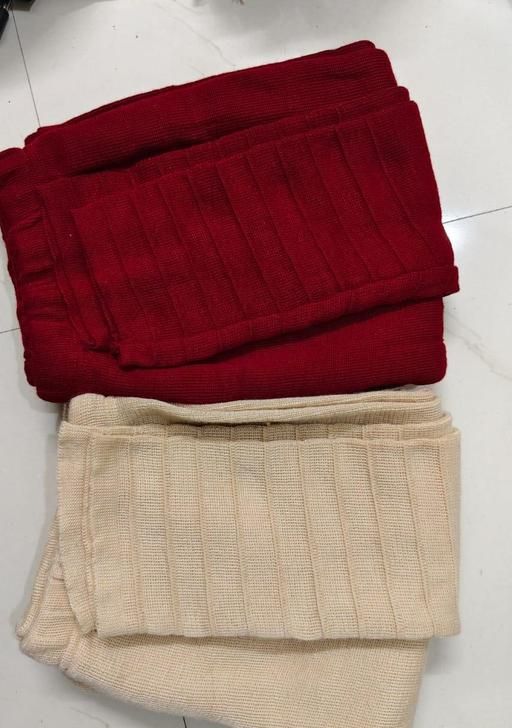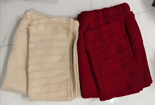 Woollen Knitted combo of 2 colors (Maroon & Beige) legging length is 38-40 inches and can be fitted upto xl size or 40 waist size.It is made of knitted wool and is very stretchable.It has stripped self design at bottom