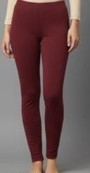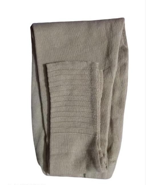 Woollen Knitted legging length is 38 inches and can be fitted upto L size or 38 waist size.It is made of knitted wool and is very stretchable.It has stripped self design at bottom.