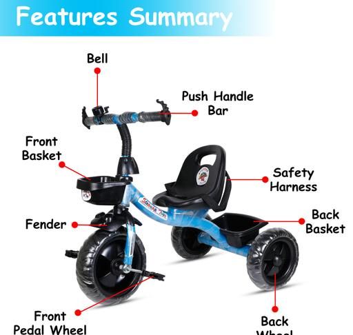 Name: BABY TRICYCLE FOR KIDS WITH FRONT AND BACK BASKET|| LIGHT BLUE -03
