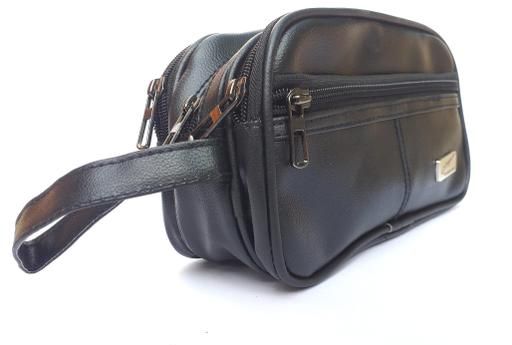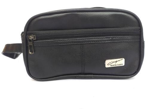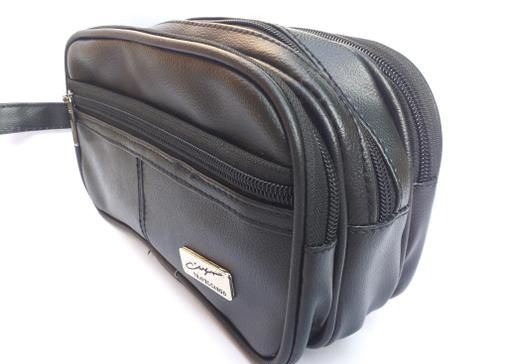 Black Leather Shaving Kit bag Long Size 4 zip