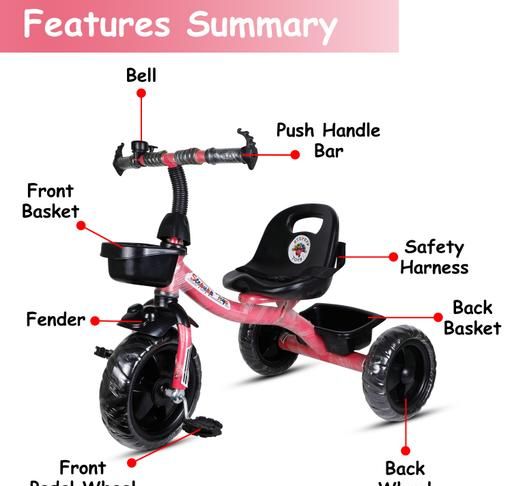 Name: BABY TRICYCLE FOR KIDS WITH FRONT AND BACK BASKET|| PINK-012