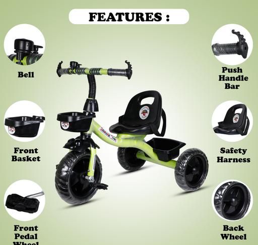 Name: BABY TRICYCLE FOR KIDS WITH FRONT AND BACK BASKET|| GREEN-012