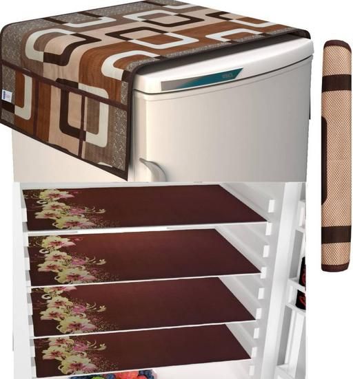 Name: SHOBHRAJ Combo of Fridge Top Cover,1 Handle Covers + 4 Fridge Mats (Multi Color, 6 Piece Set) V