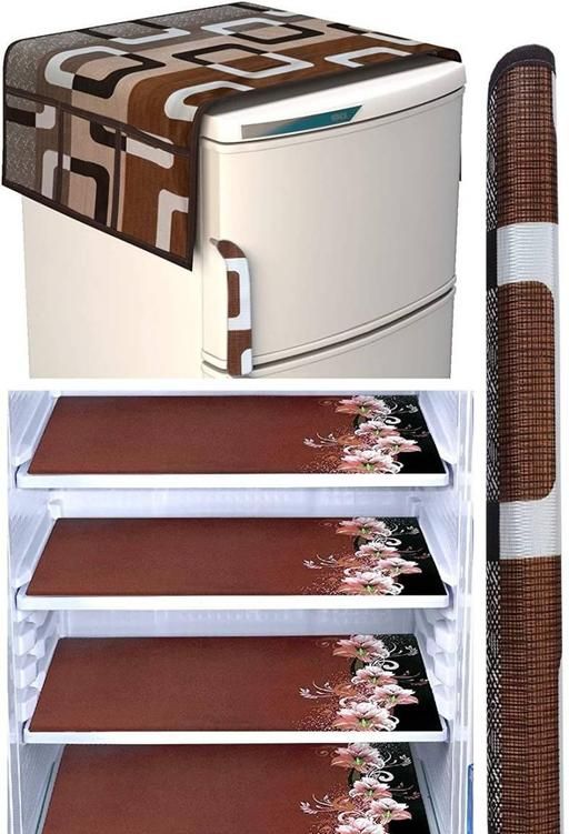 Name: SHOBHRAJ Combo of Fridge Top Cover,1 Handle Covers + 4 Fridge Mats (Multi Color, 6 Piece Set) V