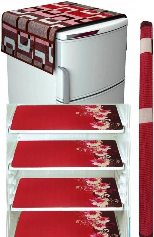 SHOBHRAJ Combo of Fridge Top Cover,1 Handle Covers + 4 Fridge Mats (Multi Color, 6 Piece Set) V