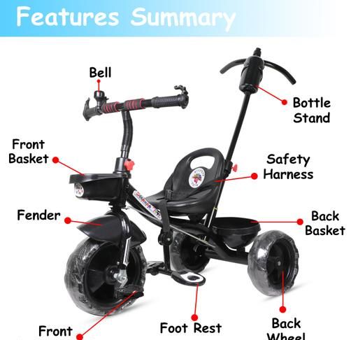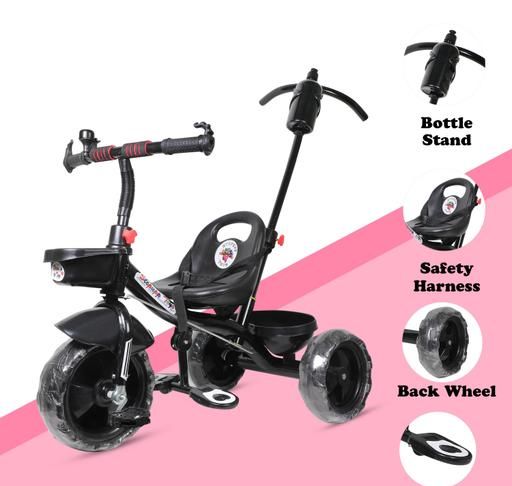 BABY TRICYCLE FOR 2 TO 5 YEAR OLD || FRONT AND BACK BASKET WITH PARENT HANDLE SUPPORT || AVYUKT ENTERPRISE || BLACK -05