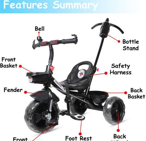 BABY TRICYCLE FOR 2 TO 4 YEAR OLD || FRONT AND BACK BASKET WITH PARENT HANDLE SUPPORT || AVYUKT ENTERPRISE || BLACK -09