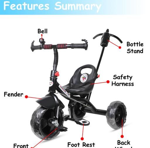 BABY TRICYCLE FOR 2 TO 5 YEAR OLD || FRONT AND BACK BASKET WITH PARENT HANDLE SUPPORT || AVYUKT ENTERPRISE || BLACK -04