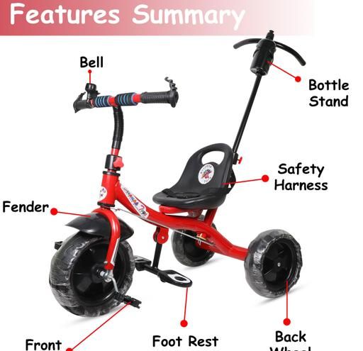 Name: BABY TRICYCLE FOR 2 TO 5 YEAR OLD || FRONT AND BACK BASKET WITH PARENT HANDLE SUPPORT || AVYUKT ENTERPRISE || RED -011