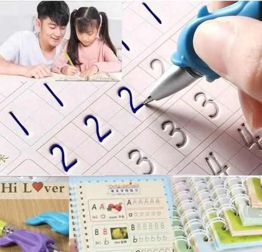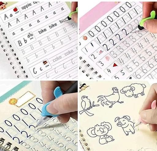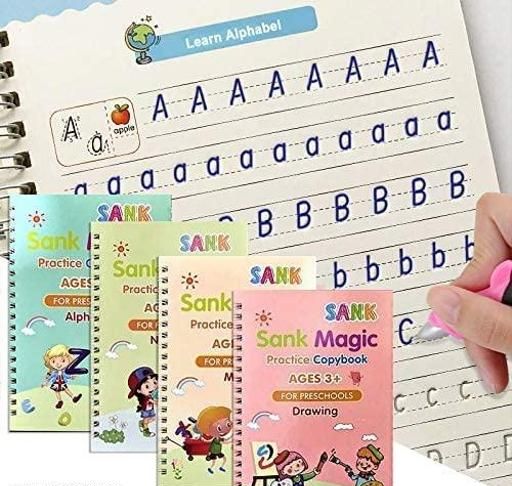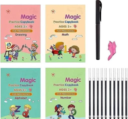Name: PRAGYA Kids Magic Practice Copy Book for Kids 4Pcs Magic Book with Pens Calligraphy Books for Beginners Practice Magical Reusable Hand Writing Book - English