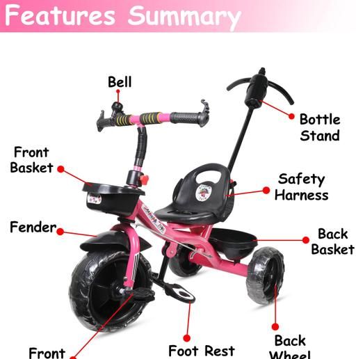 Name: BABY TRICYCLE FOR 2 TO 5 YEAR OLD || FRONT AND BACK BASKET WITH PARENT HANDLE SUPPORT || AVYUKT ENTERPRISE || PINK -08