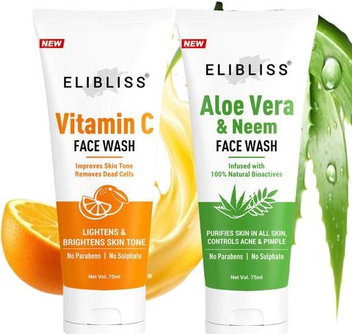 Product Name: ELIBLISS Vitamin C & Aloe Vera Neem Face Wash Combo | Brightening & Acne Control | Natural, Sulphate-Free, Paraben-Free (75ml Each)