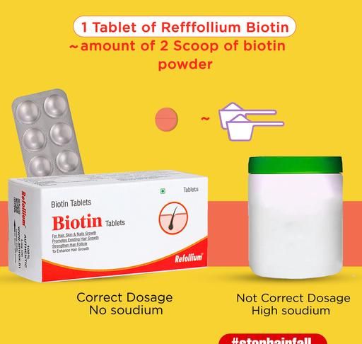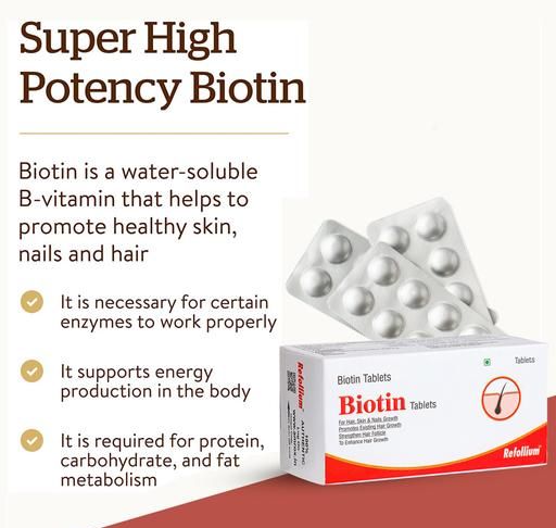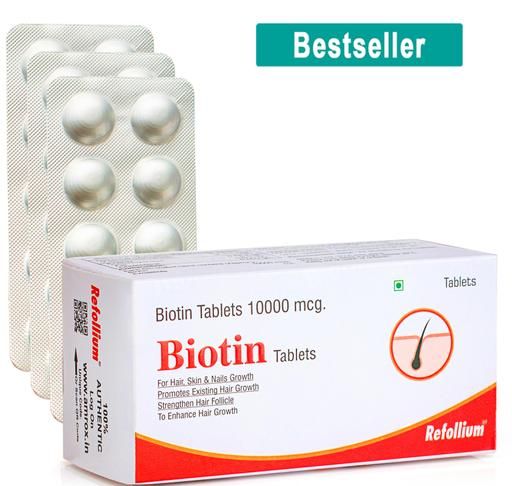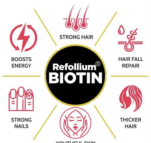 Refollium Biotin Maximum Strength For Hair Growth ,Skin and Nails for Men & Women . Healthy hair and skin require consistent keratin synthesis—the protein found in our cells.