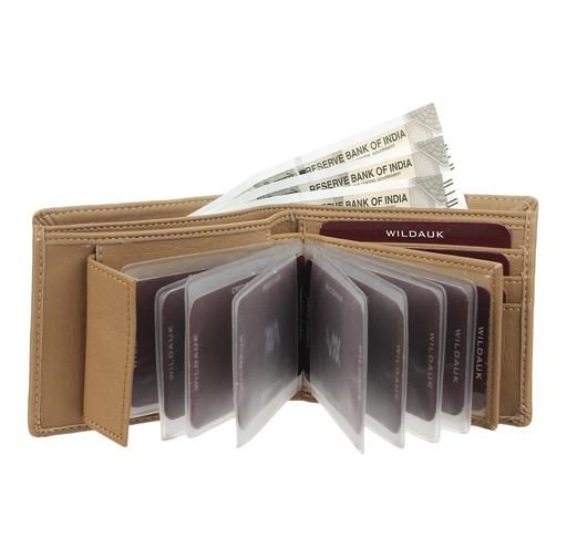 Men Beige Artificial Leather Album Wallet - Regular Size (11 Card Slots)
