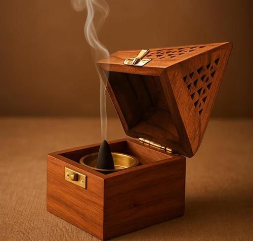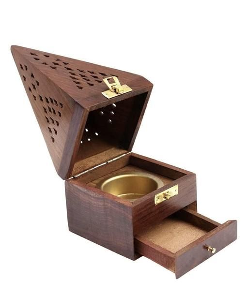 Name: M.A Handicrafts Wooden Pyramid Incense Holder, Dhoopbati Loban Stand, Handmade Fragrance Box, Lobandan, Dhoop and Loban Burner Box/case