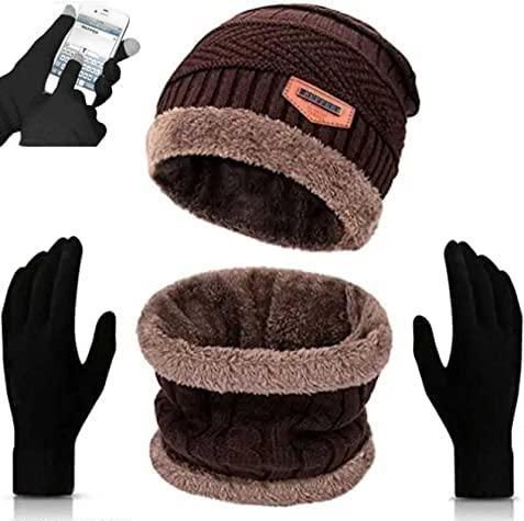 Wooly Winter Woolen Warm Unisex Beanie Knit Skull Hats, Neck Warmer with Glove for Men Women