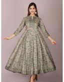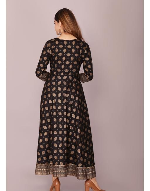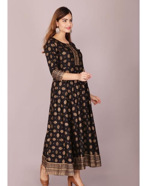 Name: Elegant Grey Floral Printed Rayon Flared Kurta for Women – Party Wear Style