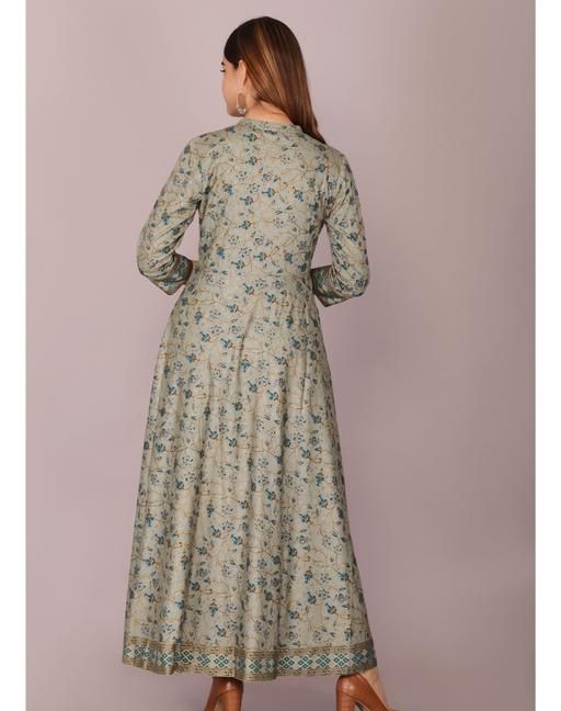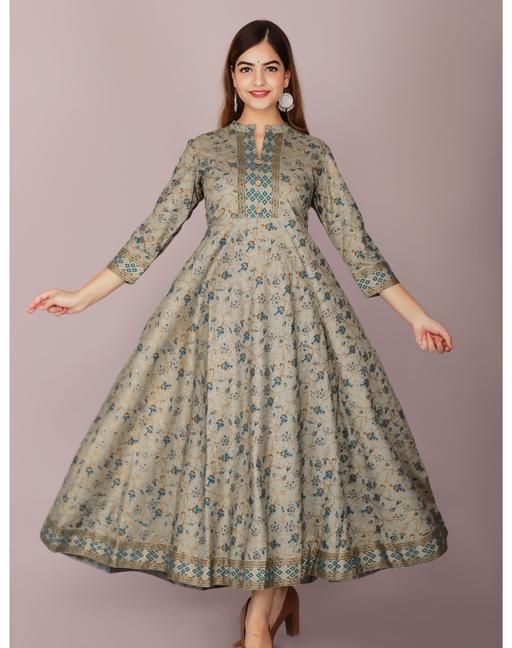 Name: Elegant Grey Floral Printed Rayon Flared Kurta for Women – Party Wear Style