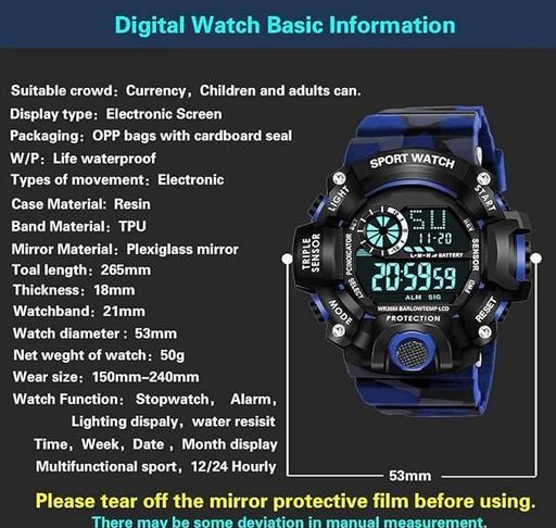 Name: Digital Sports Watch, Silicone Strap, Multi-Function, Waterproof & Shockproof Wrist Watch for Men